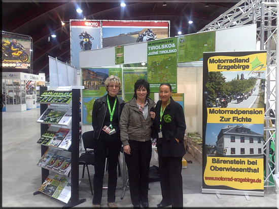 Die Motocycle Expo in Prag vom 11.-15.03.2009 ist die größte Motorradmesse in der Tschechischen Republik. Wir sind zusammen mit Nabe Design –Motorradtouren exclusiv– mit dabei. Wir hoffen unseren Nachbarn das Erzgebirge und Umgebung etwas schmackhaft zu machen. Einen großen Dank an dieser Stelle an unsere Dolmetcherin Frau Stercl, ohne Ihr hätten wir keine Chance gehabt.